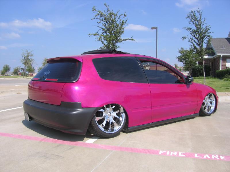 shaved doors handles,tailights,license plate holder in rear, invader body kit house of kolor magenta paint ,30 by 45 ragtop