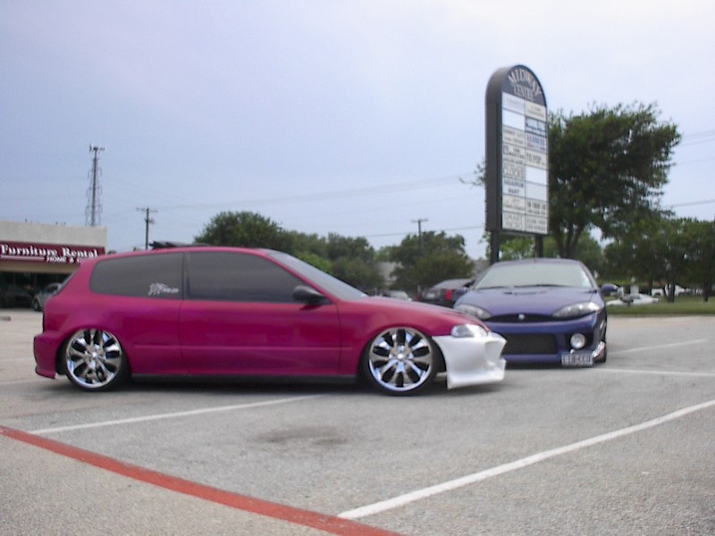 4cyl. nothing special with AEM intake,9mm sparkplug wires with some painted accessories chrome header and downpipe