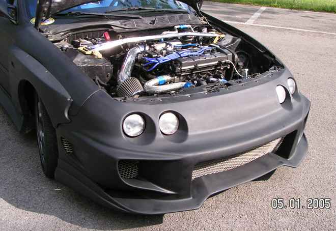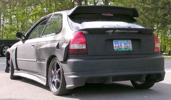 feels rear bumper and side skirts,99 acura integra convertion with vader front bumper, shaved sides type R wing and vader mid wing Flat black