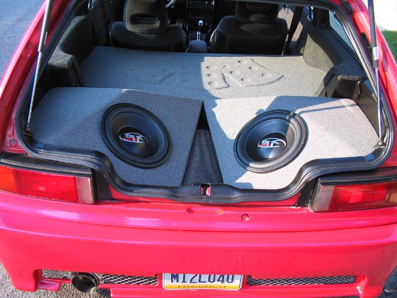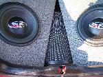 2 fosgate 12s, 300 watt fosgate amp, 300 watt soundstream amp, 6.5" audiobahn component set, 5.25" sony xplod speakers in the doors, sony flip down cd player