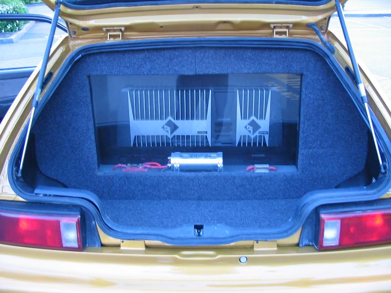 15" Clarion subs in a Wall, Rockford Fosgate 800a2/150a2 with punch link. Rockford Fosgate PA2 EQ, Alpine Headunit. Infinity Components, 5.4" Clarion Screen Custom Mounted.