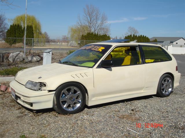 Shaved door handles,body line, roof lines,gas door,emblems,hood squirters,antenna,stock spoiler, molded on buddy club side skirts, buddy club rear body kit,z3 fenders, custom sun roof, hood pins,yellow window tint, alum wing on roof.