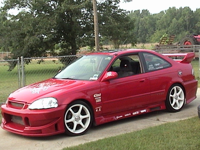 Buddy Club front, Black Widow side skirts and rear bumper, Halo projector headlights, carbon fiber tail lights, custom spoiler.