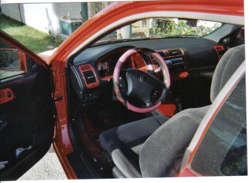 red..stock..red light washer nozzles..17' chrome Milanni Ambrosia rims..chrome euro taillights..15% black tint on windshield, 15% black tint on both side windows and 20 % on back window...catback exhaust..red painted brake calipers and brake drums..spoiler