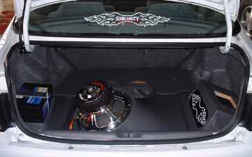 Custom Fiberglass Trunk Speaker enclosure for 1 12" Fosgate DVC chrome Speaker.