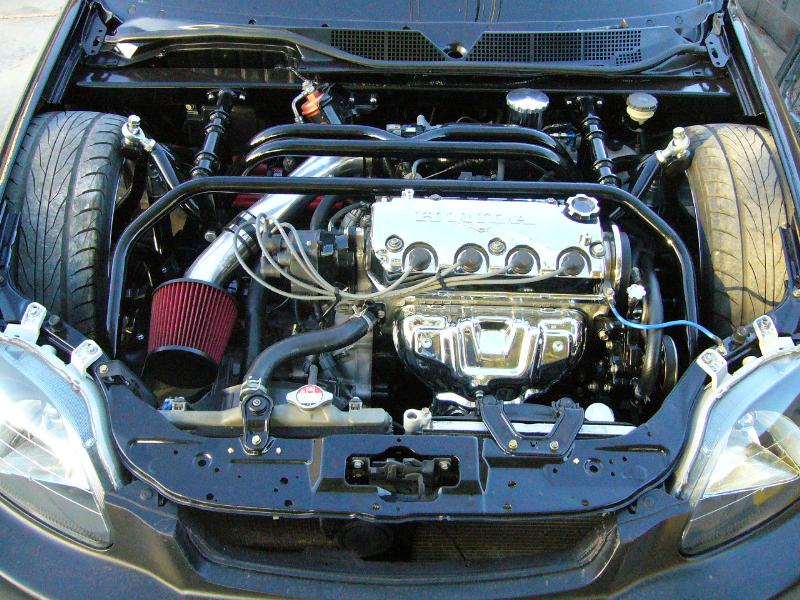 1.6SOHC. Chrome Valve Cover, Heat sheild, Fuel rail, and some others.