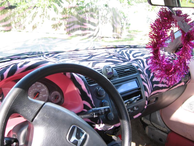 * PINK AND BLACK ZEBRA PRINT DASH * PINK AND BLACK ZEBRA PRINT HEADLINER * PINK AND BLACK ZEBRA PRINT CENTER CONSOLE * MOMO SHIFT KNOB * HYPER WHITE LIGHTS * CUSTOM PAINTED DOOR PANELS *