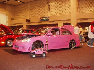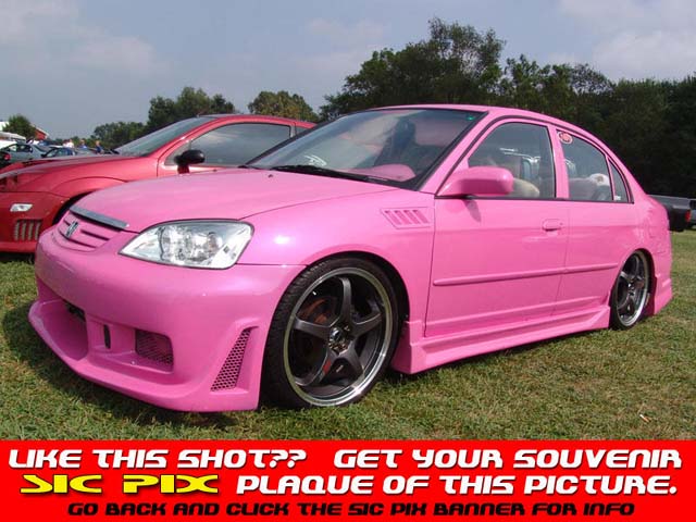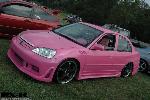 Pink Passion with tri-layer pearl, shaved rear door handles, fiberglass body kit, z3 fenders, projection headlights, Euro tails, Pink Neon underbody and in fender inserts