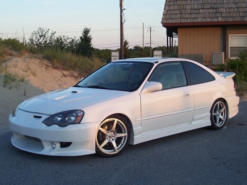 Rsx front end conversion with bomex sides molded on and rear bumper.Black widow wing molded. White diamond pearl paint.