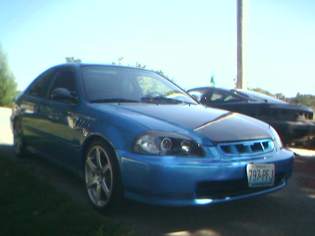Custom blue paint, carbon fiber mirrors, carbon fiber oem hood, moroso pins, mugen grill, next generation apc taillamps, anco angel eye projectors, xenon bulbs, z3 metal fenders, mugen sideskirts, shaved antenna