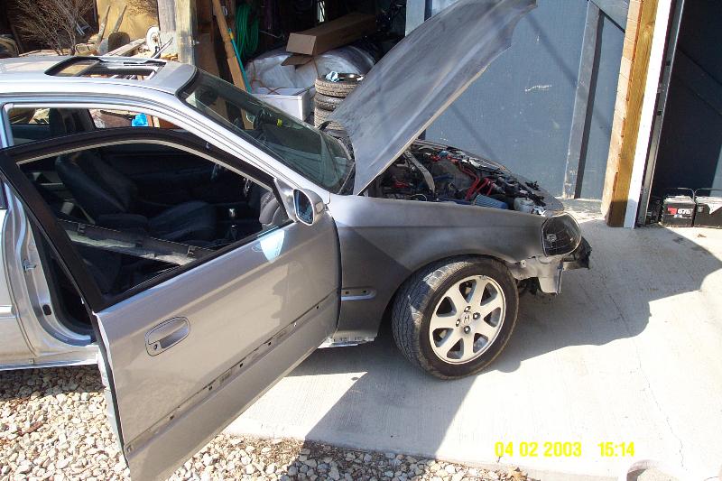 Stock 2000 Honda civic si front end silver. Shaved trunk lid. Painted mugen lip and stock side skirts. Some m3 mirrors and some 99-00 Projection headlights