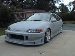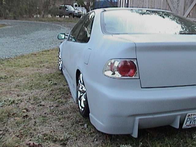 projector beam 1 piece headlights, clear corners, custom sport mirrors, shaved side molding, shaved emblems, shaved trunk, buddy club bodykit all around, molded in kit, euro tails, covered in grey primer, shaved handles