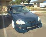 BLACK WITH A GREEN PEARL, SHAVED SIDE MOLDINGS, BLITZ FRONT BUMPER, NEOSHARK SIDE SKIRTS, AVENGER REAR BUMPER,
