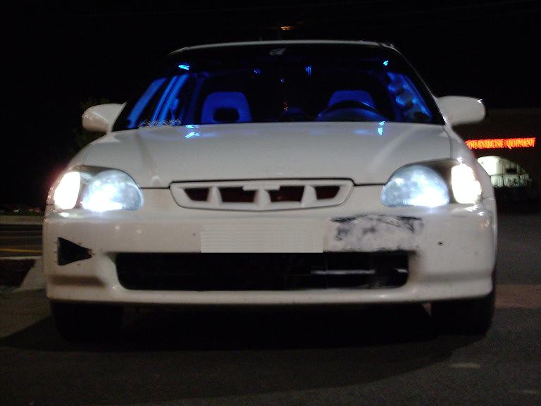 D16Y8, 18 x 15 x 2-1/4 thick aluminum radiator, 1-1/2 x 10-1/2 x 14 perma cool trany fluid cooler,race spec radiator hoses, twin batteries relocated to the trunk (one on each side) MSD ignition with blaster 2 external coil, obx 10.3mm plug wire's header, cat back, intake, just the basic's, soon to be rebuilt and hopefully a turbo..