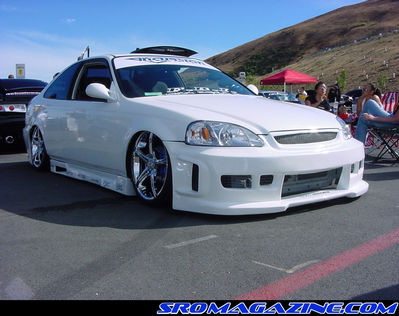 custom PPG White paint with house of kolor ice blue pearl, shaved side moldings, door handles, hood squirters, antenna, repositoned license plate, Urethane black widow kit, M3 style mirrors, blue street glow undercar lights,
