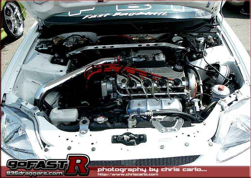 DC sports strut bar, aem cam gear, chrome valve cover, Polished Injen cold air intake,Nology spark plug wires, Many polished and chrome brakets, and parts, custom dual exhaust.