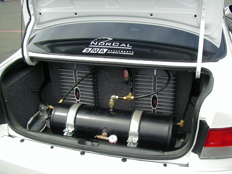 FBI air cylinders, eight 1/2" valves, 1/2" air lines, 7 gallon air tank, EAI switch box controller, VIAIR 450 compressor, EAI water trap, EAI ADJ pressure switch @ 225 PSI. NOW ON NITROGEN!!!