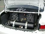 Alpine IVA-C801 CD/Monitor, Rockford fosgate PA2 EQ, Sony Playstation 2, Q forms kick panels with Rockford fosgate 5 1/4 mids, and Tweets, Rockford fosgate 6 1/2 mids, and Tweets in doors, 2 Kicker 15" L7 solo-baric subs, Removed back seat for custom 12 cubic foot sub enclosure(for spl), 1 Rockford fosgate BD 1500 amp for subs, 2 Rockford fosgate stiffening caps, Rockford fosgate 0 gauge power & ground, and RCA wires, Rockford fosgate battery posts, and Fuse holder.