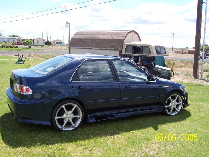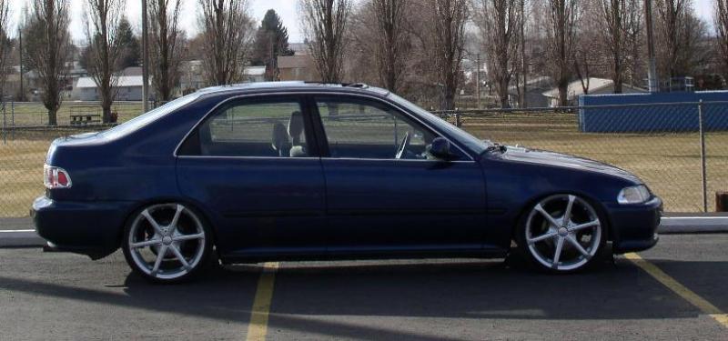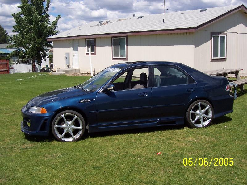 hood, wing, air cylinder,dual exhaust, hearder, high flow cat, and a B18A1 engine swap, two-tone paint job BMW silver on top with a harvard blue on the bottom