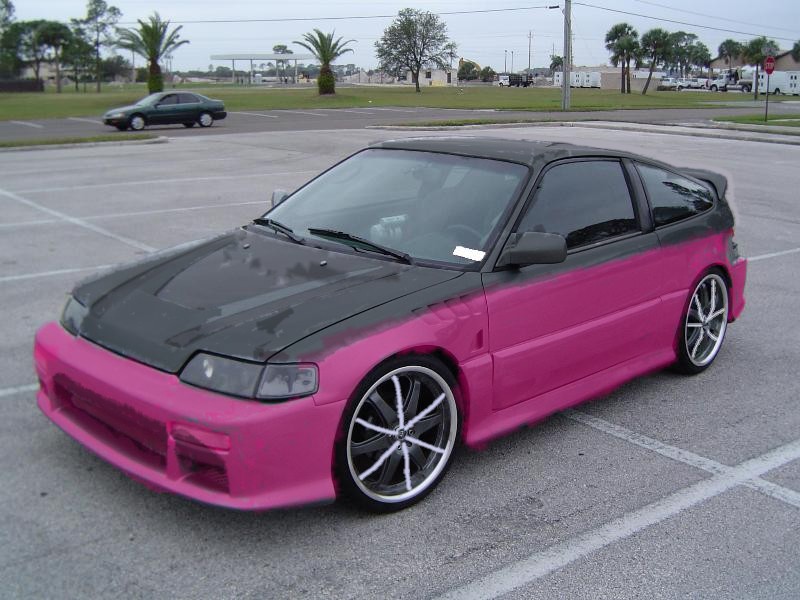 Being completly shaved and moulded with a full body kit, carbon hood, and a two-tone black and pink paint job.