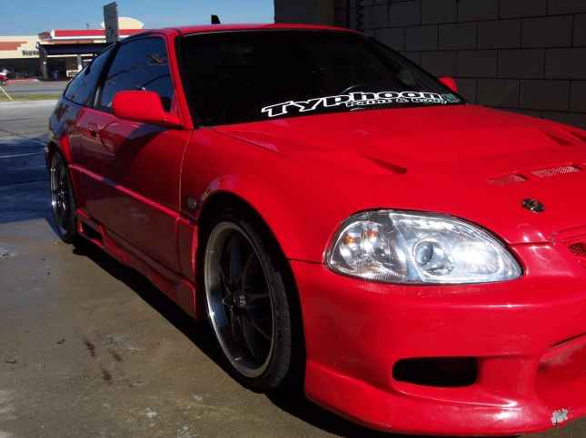 98 civic front clip, 2001 s2000 tailights, accord trunk, bomex front bumper, black widow sideskirts molded in, buddy club back bumper molded in, predator 2 hood