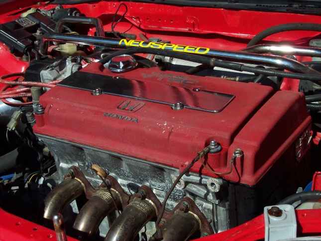 jdm b16, itr intake, 3.5 inch custom intake piping, k&n filter, dc header, neuspeed strut tower brace, aem fuel rail, full tanabe medallion exaust, place racing motor mounts