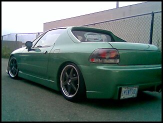 buddy club body kit..shaved wing,emblems, fog lights,3rd break light,intenna,rear plate. euro tails,black headlights with HID. carbon fiber hood, green underglow and custom paint
