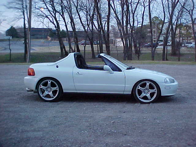 D15B7 1.5L non-VTEC Bored .30 over making it a 1.7L... Blueprinted and balance, head has been ported and polished... 4 Speed Auto Tranny... Cold air intake, and a Power Tone muffler. Also a 65hp ZEX nitrous oxide system. Before the motor was bored and all the motor work was done it ran a 16.19 @ 87.9 mph, in the 1/4 mile, which I hear is not too bad for a 1.5 with an auto.