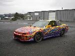 molded front bumper, shaved emblems, shaved antenna, custom hood, custom headlights, full graphics paint job