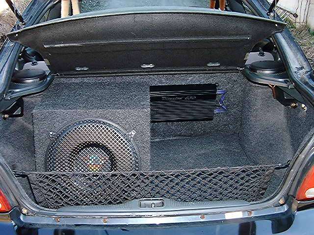 Pioneer CD, Lanzar 6 1/2 seps front, 5 1/4 coaxil rear, DEI 650 Amplifier, DEI 15" Competition sub in trunk.