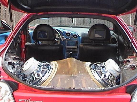 Got all the finest audioequipment Pioneer indash tv/dvd fold out, 2 headrest tv's, Pioneer 9000 a/v unit, 2 Audiobahn flame series 12's in custom fiberglass box, Infinity perfect 6.5 components, 2 - 3000 watt class D Boss amps, Pioneer DVD Navigation System with voice control.