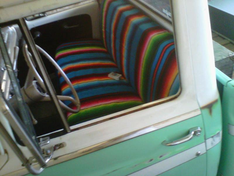 Pearl white vinyl tuck and roll w/ Mexican blanket