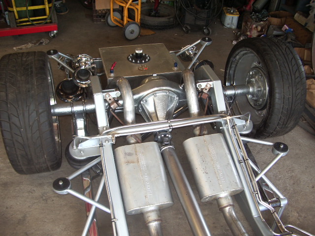 Bags with one off frame with built in air tanks(powder coated), control arms (chrome), Toyota spindles (chrome), brakes (chrome), ball joints (chrome), mustang rack (chrome), 2-link rear (chromed), Toyota rear axle, RCI fuel cell, rear train horns (chromed), 2 Thomas 337 compressors, GC 450 valves, pollished air lines and fuel lines