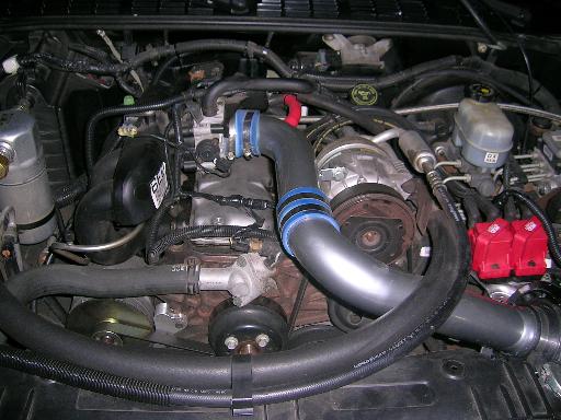 Accel 8.8 wires, Iraggi 240 Amp Alt., custom billet alt. bracket, 58MM trottle body, triple electric fans, two 12" fans between grill and radiator, one 16" fan under hood on radiator.