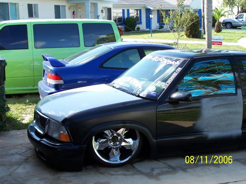 GMC front end with envoy bumper, completly shaved bed (who needs taillights?) shaved handles, street scene mirrors