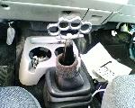 '98 door panels & inner handles, brass knuckle shifter(can be removed to punch people), reupholstered headliner in a funky material, recipts, dirt, & cd's cuz i drive it everyday .