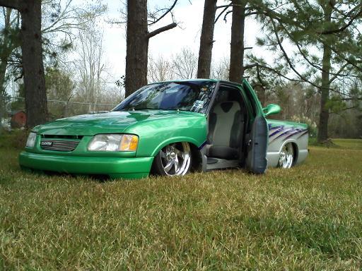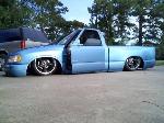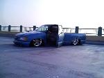 2009 Crown Vic Blue, airbrushed emblems, one-off cowl hood, molded leds, shaved, suicided driver door only, etc.