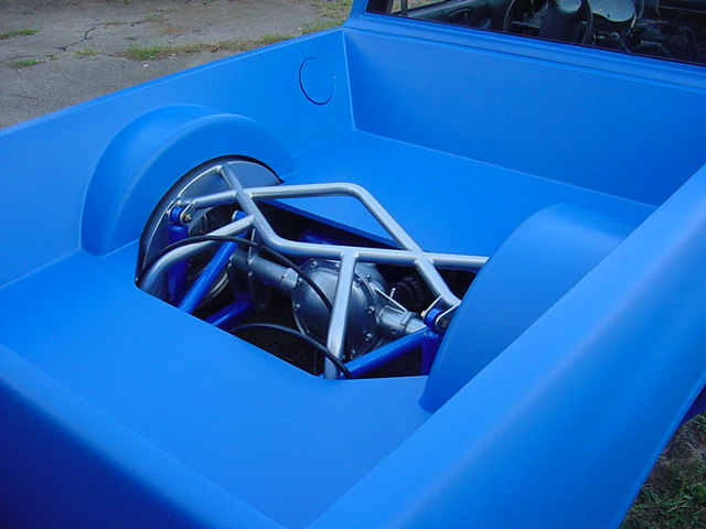 All suspension and steering componants was painted in House of Kolor Trueblue Pearl with Dupont clearcoat. (Spindles are Orion Silver.... rotor fins & calipers are trueblue pearl)