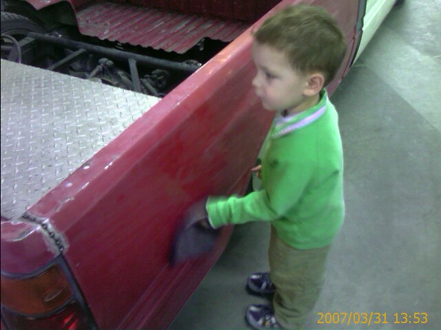 Shaved doors, gas door, antenna hole, holes were some retard put hood pins in, bed seams, and cab seams