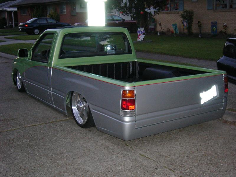 Vw green and silver 2-tone.Sliding ragtop.Shaved everything with rodeo headlights,rodeo one piece side windows and mirrors.Painted billet grill.