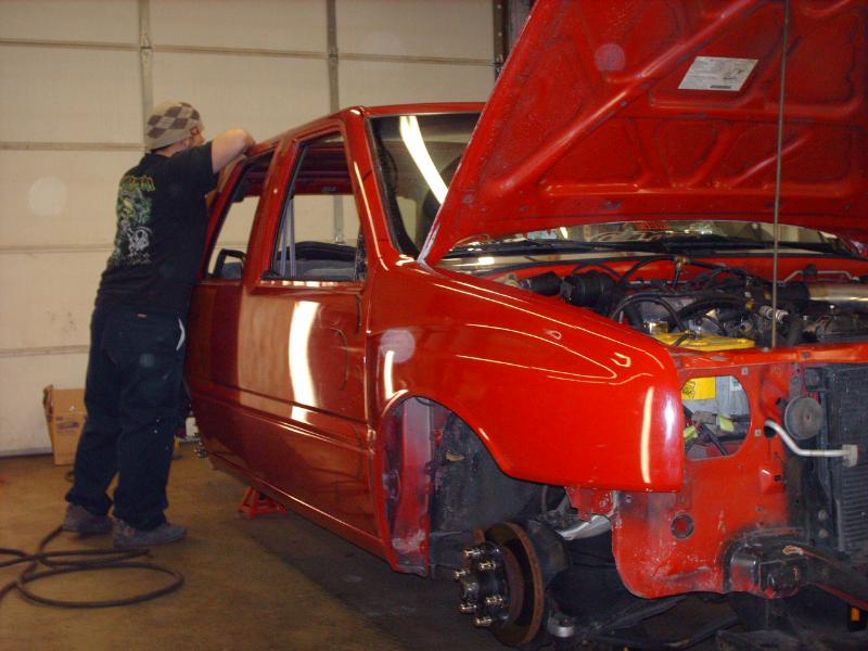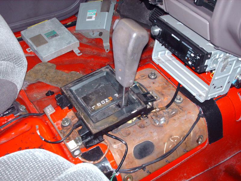 2.6 ltr 4 cyl w/ a 4spd AUTOMATIC TRANSMISSION. Modded Honda Civic intake and a yellow top. A lot of relocated crap. And big holes with giant wheels poking through!!!