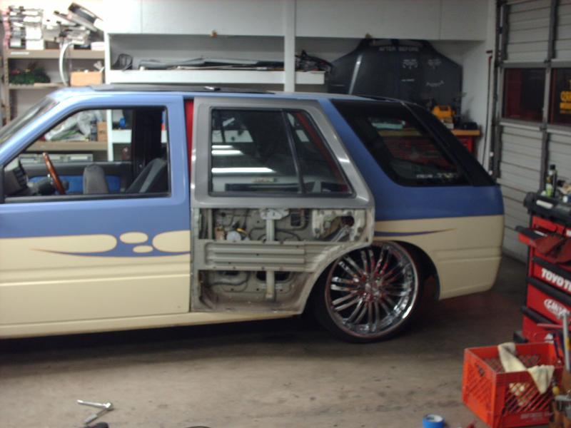 Up graded to a '96 Honda Passport Dash, column, seats and console. Installed all factory power windows and added some some blue suede to the doors. Honestly, it looks a little better but still looks like shit. I'll worry about that later. I just want my rear doors to open again.