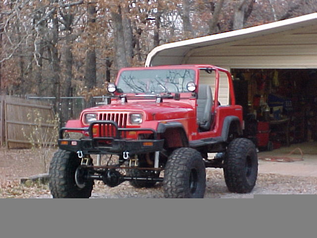 arb front bumper, max axe, high lift jack,kc lights, fucked up paint