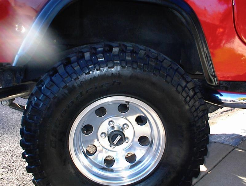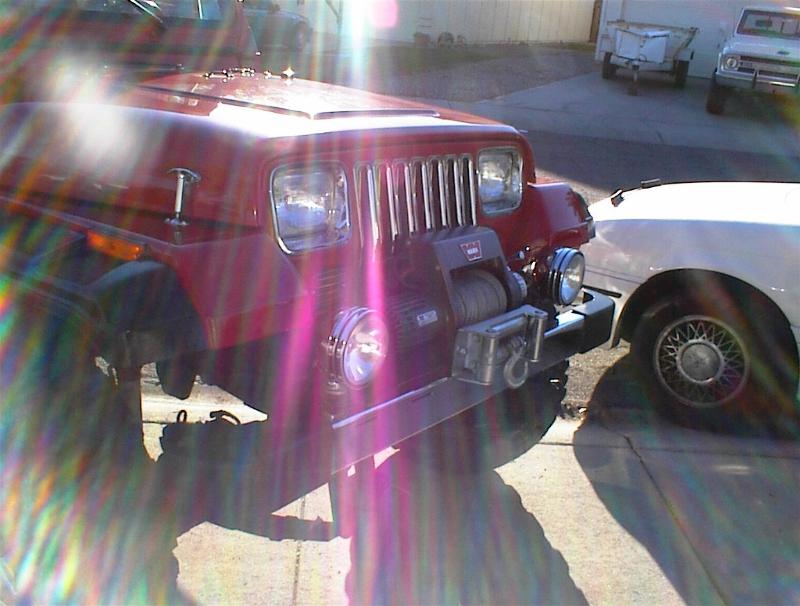 red paint and chrome nerfbars with xenon flares, kc lights, warn 95oolb winch with ram offroad front and rear chrome tube bumpers.
