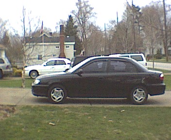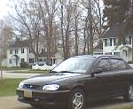 woodgrain dash kit, painted accents, custom KIA seatbelt pads, white gauges, chrome gauge bezel