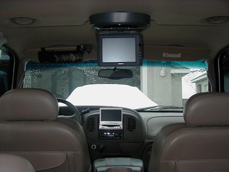 7" panasonic flip out in dash, 8 1/2 inch flip down in rear 3- 8" JL w-6's