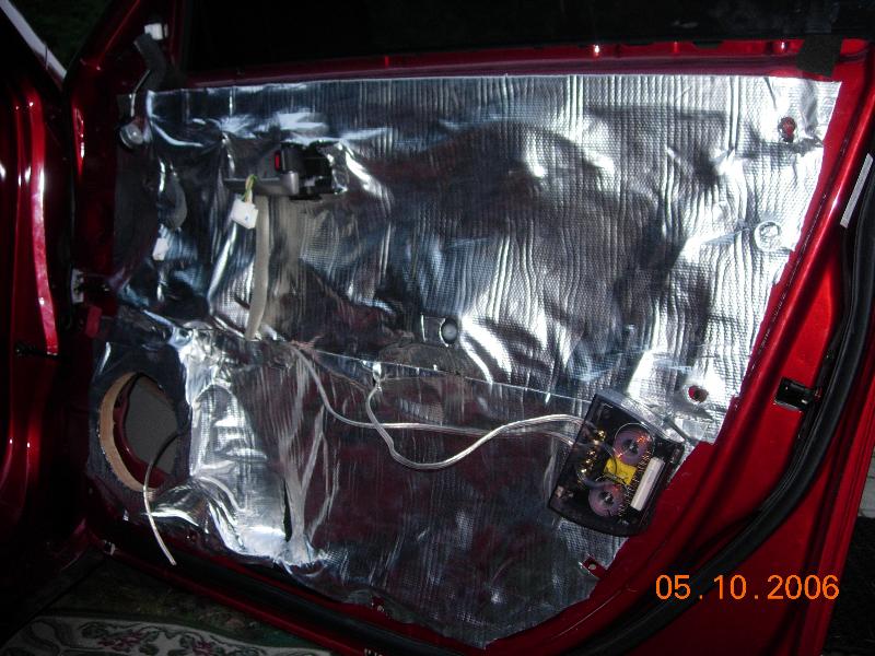 All doors are covered by sound deteneng material. fitted with custom adaptors to fit Quantum 6.5 components up front and 6.5 2-ways on rear all powered by a kiker 350w amp.