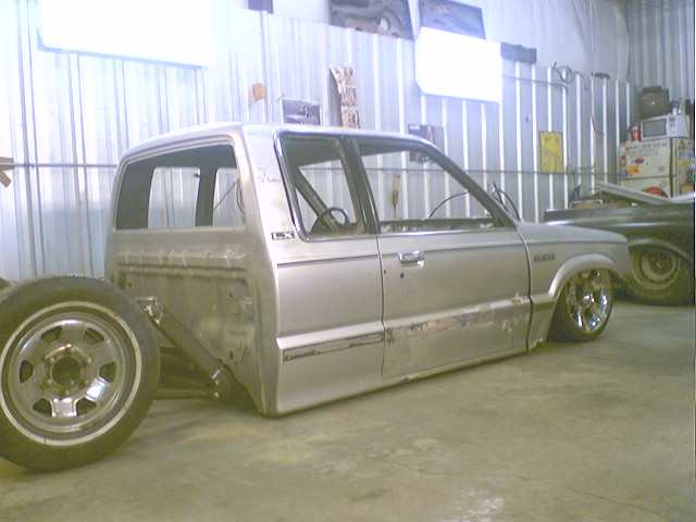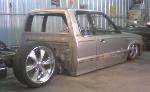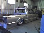 stock floored...pinch weld cut off...shaved everything...35x35 ragtop...suicide doors...wood bed kit