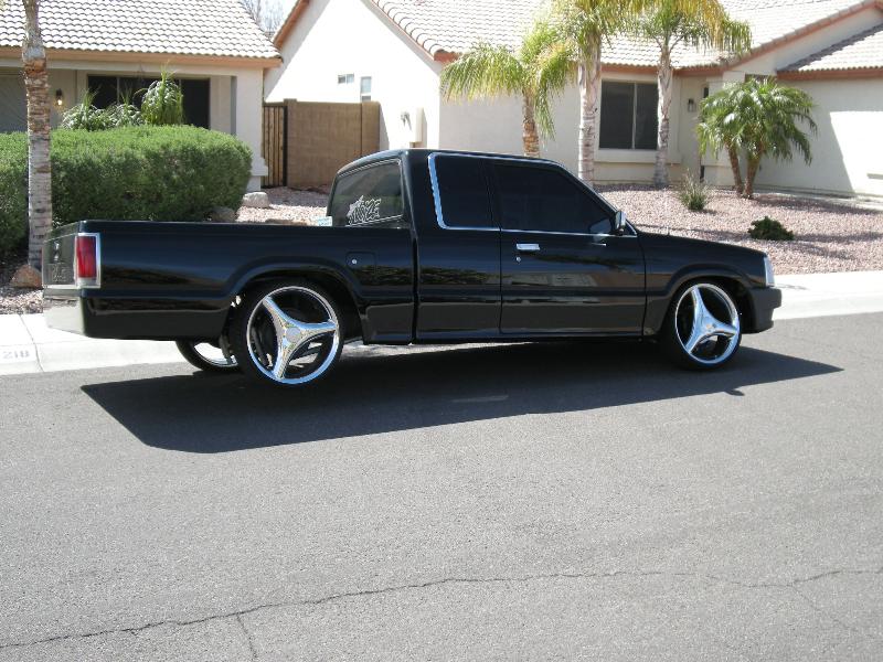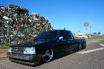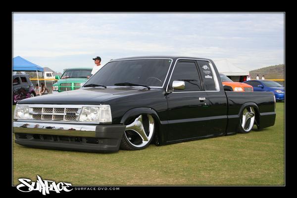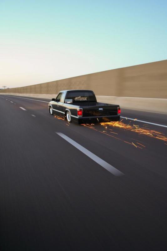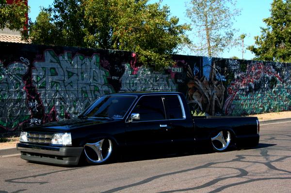 Shaved fender emblems. Roll pan. Black paint.