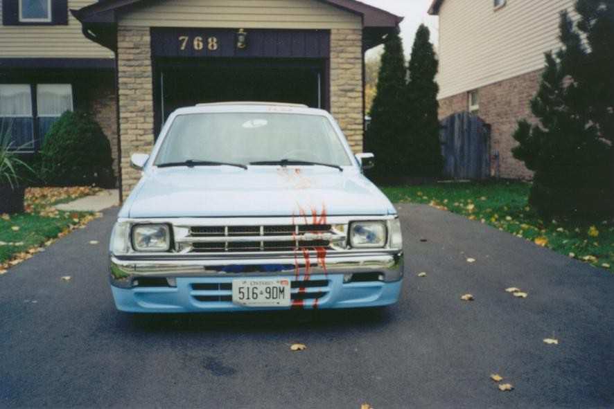 Shaved bed seams,tailgate,gas filler door,tail lights,door handles,locks inside and out,embelems,antenna, cowl pannel. Sliding rag (20x34),toyota 4- runner bumper and valance, LED tail lights, checkmate flush tonneau, custom paint,lexan rear window. oh and 4x4 sheetmetal.2-1/2" bodydrop
